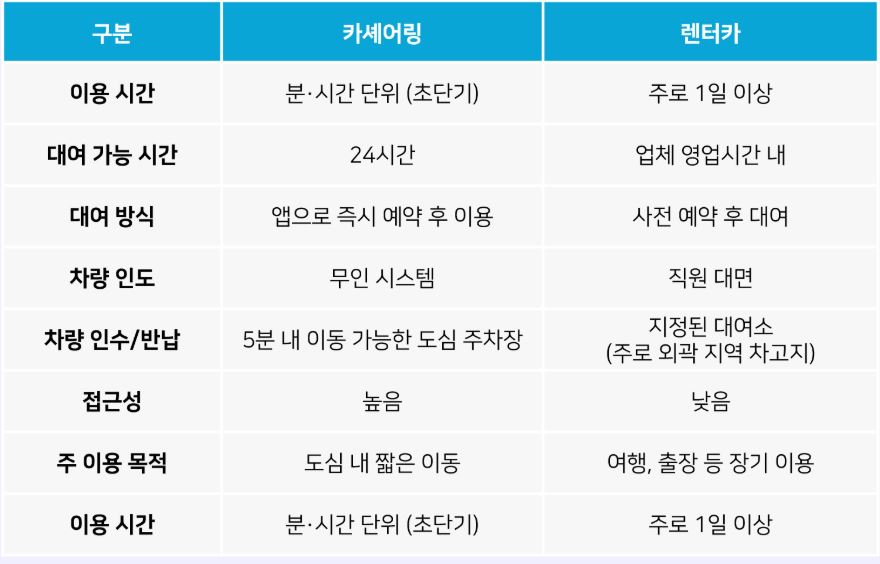 카셰어링 vs 렌터카, 뭐가 다를까?