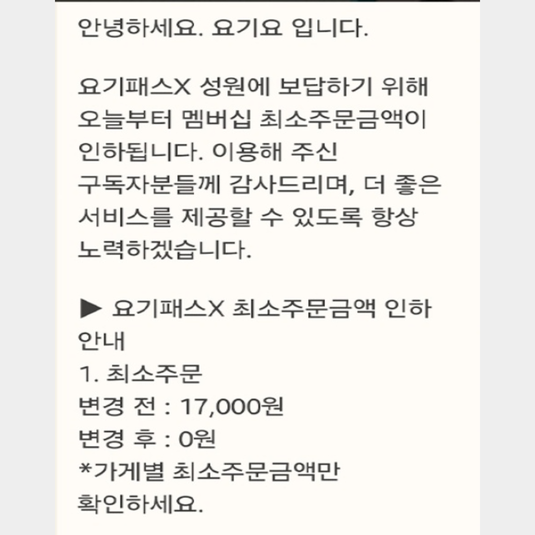 ✅ 최소주문금액 없어짐.
