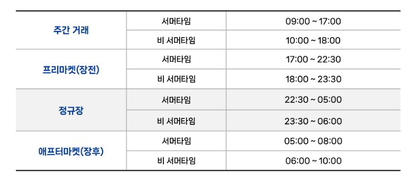 2. 매매를 위해서는 국내 증권사에서 계좌를 개설해야 하며, 정규 거래 시간은 한국 기준 새벽이지만 시간 외 거래가 활발해지고 있습니다.