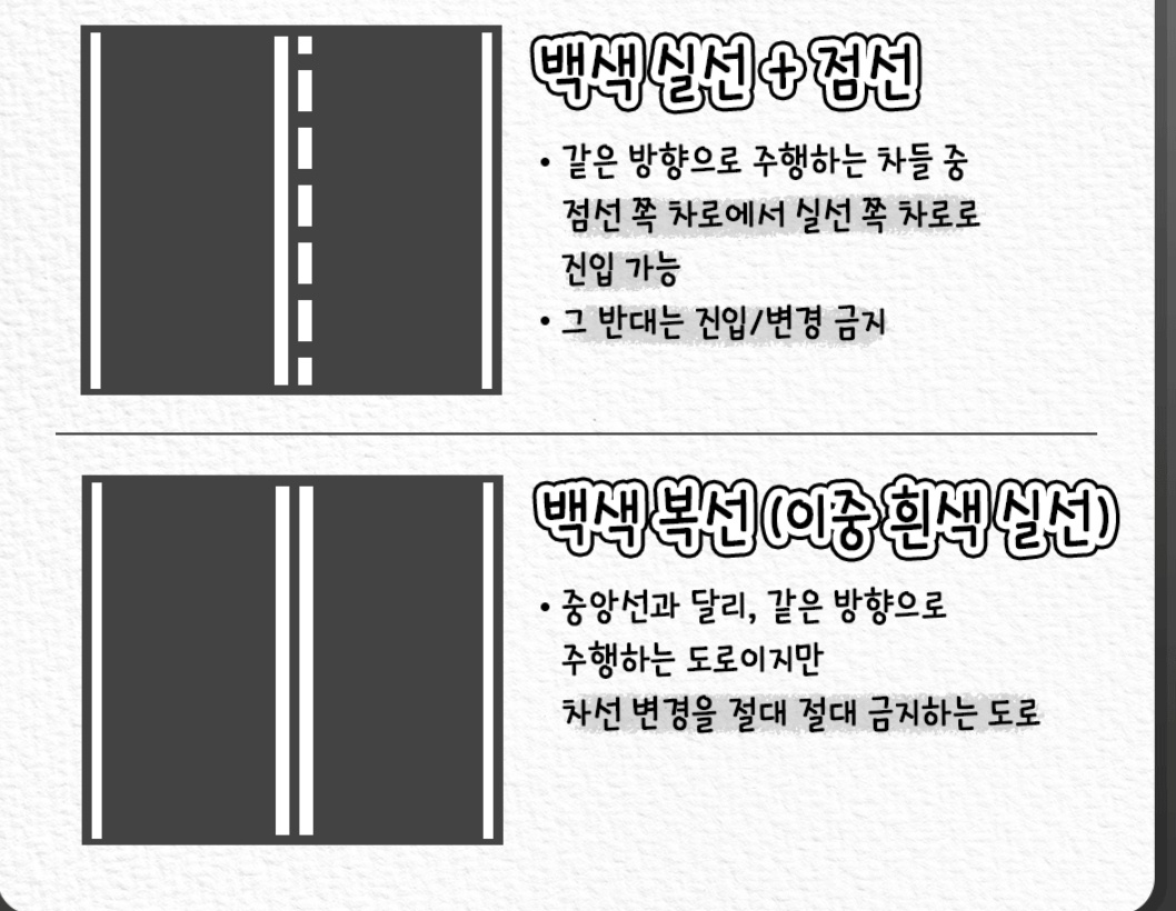지금까지 다양한 차선의 종류와 그 의미를 알아보았습니다. 실선이었다가 점선이었다가 헷갈리기도 하지만 공통되는 뜻도 있었으니 쉽게 기억할 수 있을 것입니다. 초보 운전자는 물론 운전에 능숙하신 분들도 차선을 확실하게 인지하고 운전을 해야 더욱 안전한 도로가 만들어질 것 같습니다. 그럼 오늘도 모두 안전 운전하시길 바랍니다.