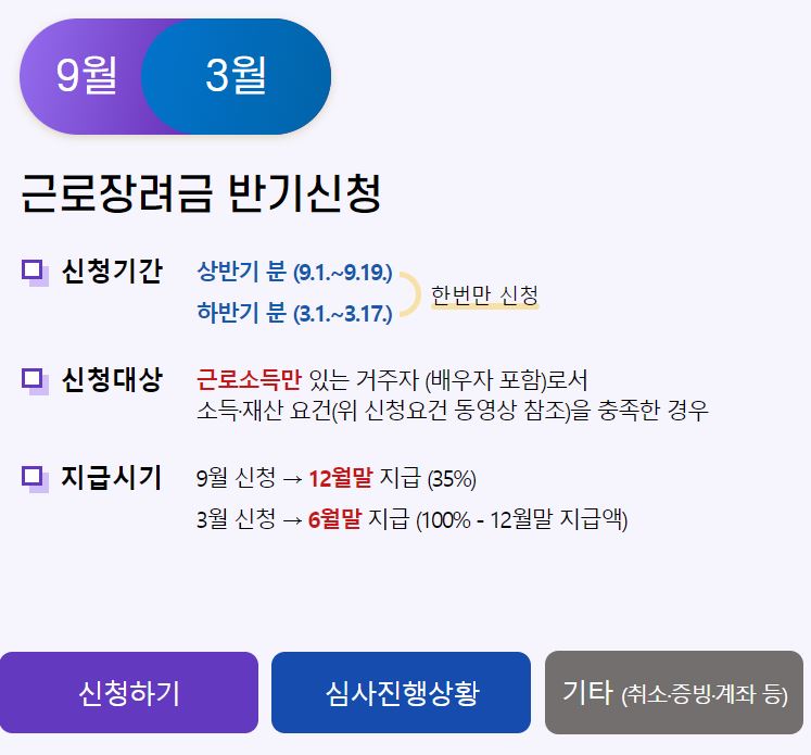 근로소득 발생 시점과 장려금 수급 시점이 많은 차이가 나는 경우, 이를 보완하기 위해 2019년부터 시행되고 있는 정책입니다.