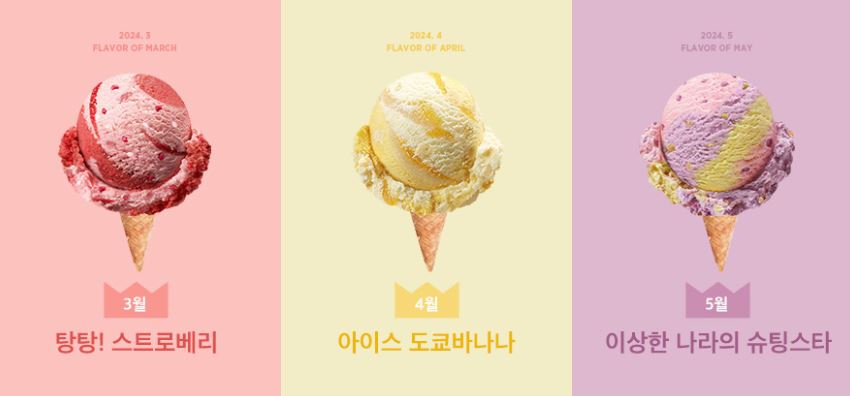 미국의 아이스크림 브랜드 배스킨라빈스는 1986년 서울 명동에 1호점을 내며 국내에 진출했습니다. SPC그룹 계열 외식업체인 비알코리아가 운영하는데요. 프리미엄 아이스크림의 대명사로 불리며 국내 시장에 성공적으로 정착했습니다. 6월 18일 기준 전국에 있는 배스킨라빈스 매장 수는 1,782개로 2019년 1,475개, 2021년 1,626개에서 꾸준히 증가해 왔죠. 인구수 대비 매장 수로는 한국이 가장 많은 것으로 집계되기도 했습니다. 원재료 가격 상승과 경기 침체 등의 여파로 작년 첫 적자를 기록한 것으로 추정되기도 하지만, 여전히 국내 프리미엄 아이스크림의 1인자죠. 그 비결로는 ‘이달의 맛’ 등으로 선보이는 꾸준한 신제품 출시, 아이스크림 케이크 등의 제품 다양화, 유명 브랜드와의 콘텐츠 협업이 꼽힙니다.