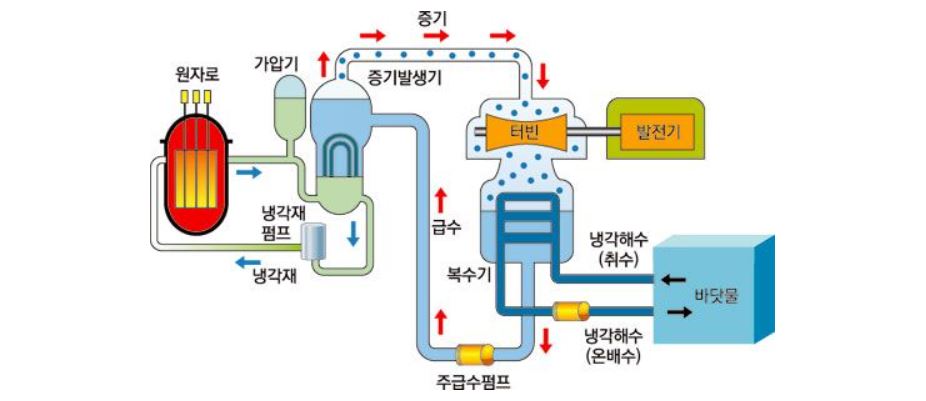 비등경수형 원전은 연료봉과 닿았던 물이 바로 증기로 변해 터빈을 돌리기에 발전 효율이 더 좋지만, 안전성은 상대적으로 낮은 편입니다. 반면, 가압경수형 원전은 연료봉과 닿아 뜨거워진 물이 다시 물을 끓여 증기를 발생시키기에 발전 효율은 조금 떨어지더라도 안전성은 비등경수형에 비해 높은 편이죠. 현재 우리나라에는 비등경수형 원전은 없고, 모두 가압수형 원전만 존재하는데요. 탈원전에 반대하는 사람들은 이를 근거로 우리나라에서는 심각한 원전 사고는 발생하기 어렵다고 주장하기도 합니다.
