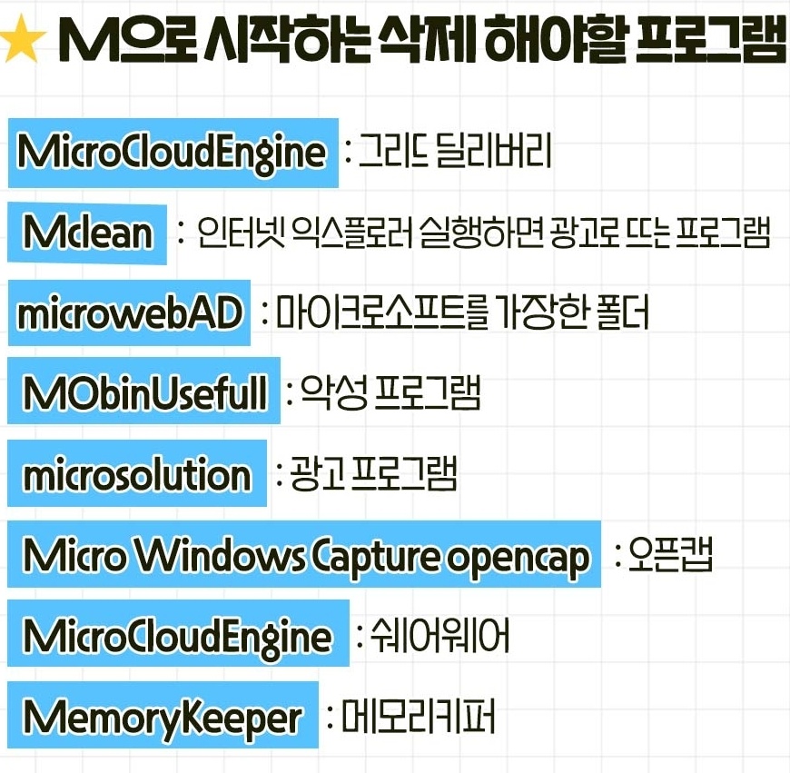 컴퓨터가 갑자기 느려졌을 때 사진첩을 아무리 지워도 용량이 늘어나지 않는 경험 하셨을 겁니다. 그렇다고 컴퓨터 속 복잡한 파일들을 지우자니 혹시 컴퓨터에 문제가 생길까 봐 영어로 된 파일명들을 클릭해 보며 안드로메다로 빠진 경험 있으실 겁니다. 그래서 컴퓨터가 느려졌을때 지워야 할 파일명들을 알파벳별로 정리해 보았습니다.