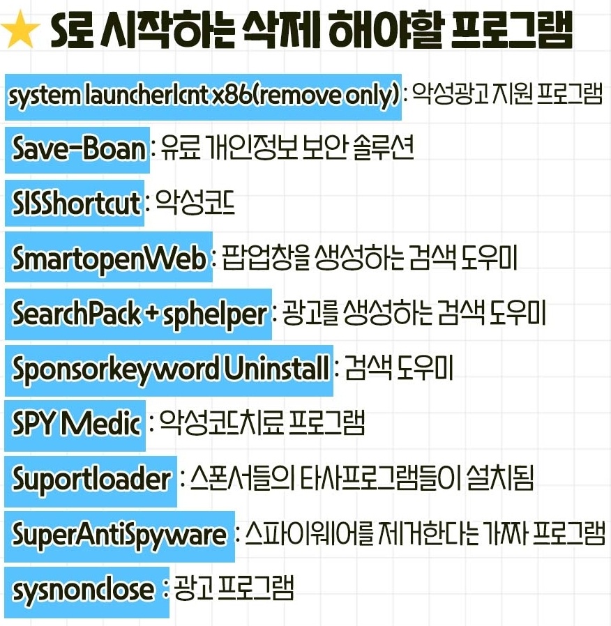 - 검색된 프로그램들을 클릭 후 삭제!!!!