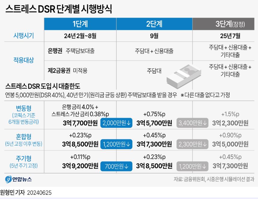 연봉 5천만 원 대출자를 기준으로 3단계 스트레스 DSR이 시행되면 적게는 1,200만 원가량, 많게는 3,400만 원가량 대출 한도가 줄어드는데요. 거기에 제2금융권 신용대출에도 스트레스 DSR이 적용되는 등 적용 대상도 확대됩니다.