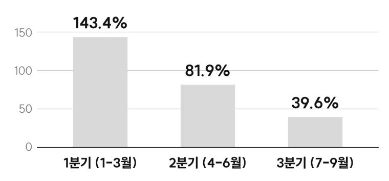 기업의 전망과 관계 없이 단기 수익만을 노린 투자 수요가 IPO 시장으로 몰리며 이른바 ‘공모주 거품’ 현상이 나타나는 경우입니다. ‘대어’로 불리며 기대를 한 몸에 받았던 기업들이 상장 후 몇 개월 만에 주가가 공모가 아래로 내려가는 사례도 있어 조심스러운 접근이 필요해요. 실제로 이번 년도 들어 공모주 투자 수익률은 아래 그래프와 같이 꾸준히 줄어들고 있는 추세입니다. 참고 하시길 바랍니다.