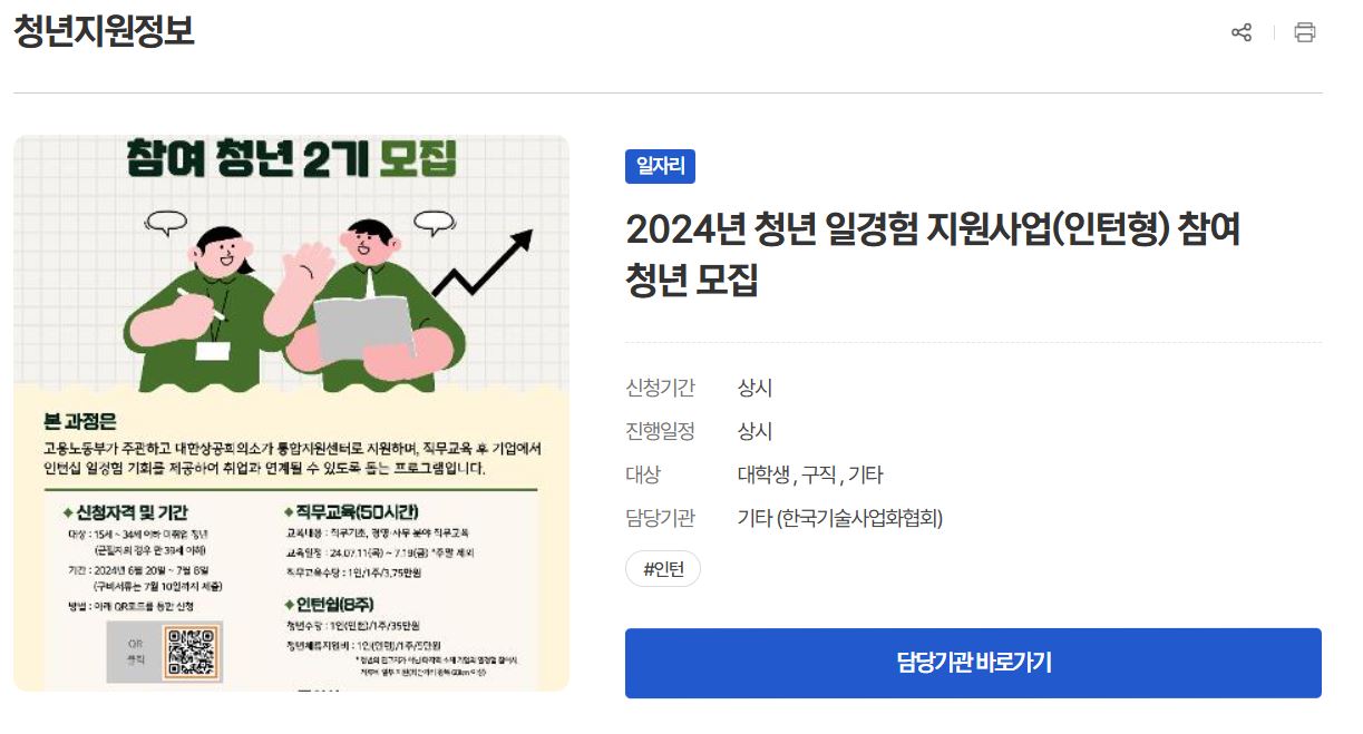 청년 일경험 지원 사업